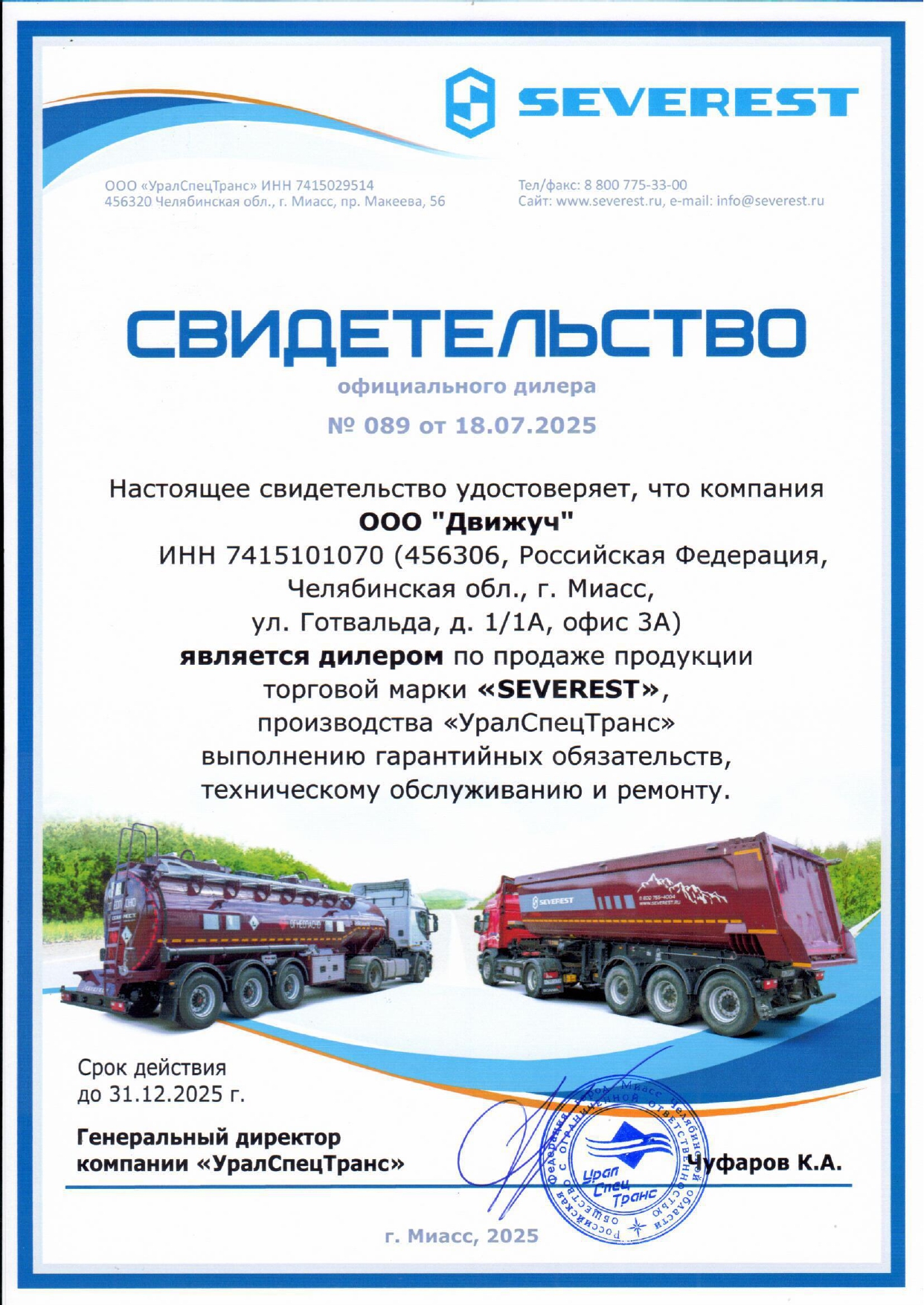 Мы содействуем бизнесу клиентов и партнеров, предоставляя технику адаптированную под все необходимые условия эксплуатации, в согласованные сроки. Мы не стоим на месте и за 2019 год добились стремительных результатов, таких как получение свидетельства о присвоении Международного идентификационного кода изготовителя транспортного средства (WMI), как производители, а также регистрация товарного знака. Для Вашего удобства, подключились к системе электронных ПТС.
