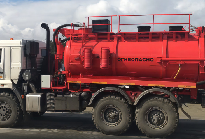 На резервуаре нанесены надписи «Огнеопасно». На задней поверхности цистерны есть катушка заземления.